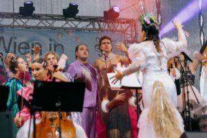 On the first weekend in August, the tree circle “Am Himmel”, an eleven-hectare area in Vienna's Döbling district, is transformed into a Strauss stage with a spectacular view of the entire city.