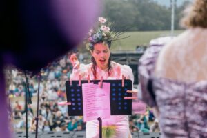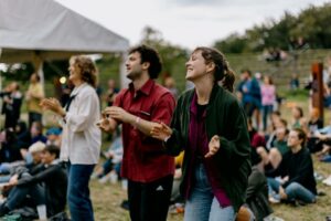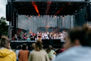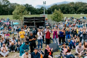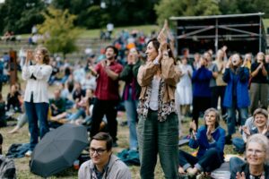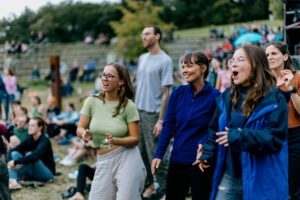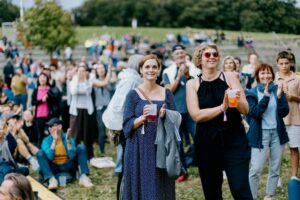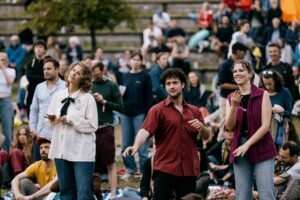 You can either take a seat on the stone steps of the amphitheater or make yourself comfortable on the surrounding meadow. We recommend taking a seat mat, picnic blanket or similar with you.
