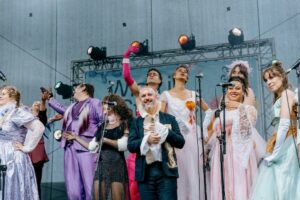 Join Johann Strauss for an unconventional look at the present and the future. The performers have no truck withl genre boundaries and categorisations. The Hip-Hop Duo EsRap and pianist Marino Formenti reinterpret Viennese operetta. Mandola meets cello for everything from heavy rock to Strauss miniatures, the Schmusechor (Snuggles Choir) dances its queer/feminist version of the Blue Danube. These artists all reflext the soundtrack of the age we live in, an age closer to Strauss' time than we may think.